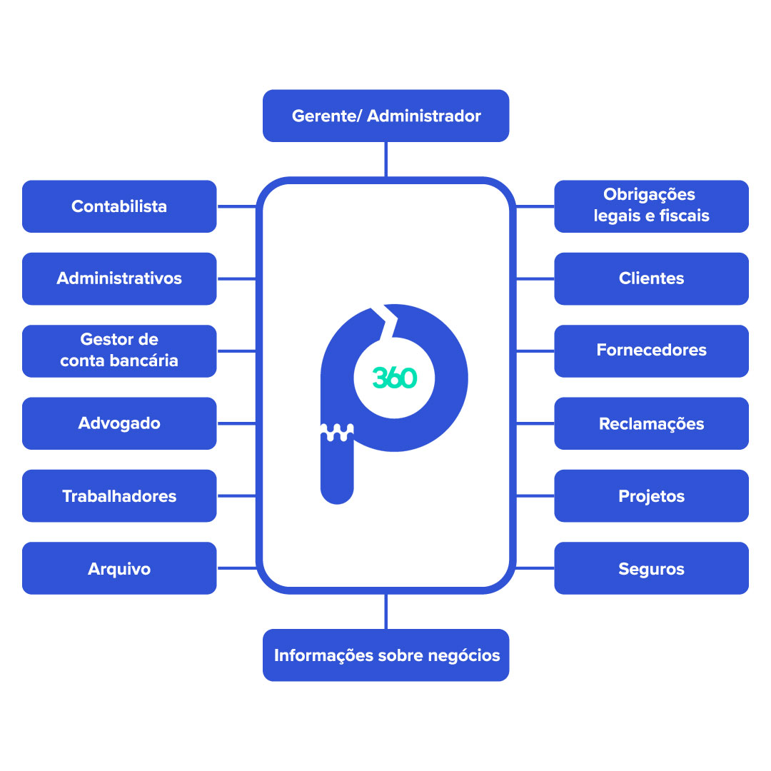 A P360 foi desenhada a pensar em ajudar principalmente o empresário e o contabilista, uma vez que esta plataforma permitirá concentrar informação – todo o tipo de dados, desde documentos de suporte, arquivo permanente, guias, declarações fiscais – e partilhá-los com quem decidirem. Para além disso, a plataforma irá gerar alertas automáticos e aproveitar toda a informação extraída da contabilidade para preparar relatórios de acompanhamento dos negócios de cada cliente.